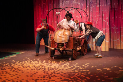 Performance photograph for The Trail to Oregon! performed by A-State Theatre in April 2023.