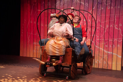 Performance photograph for The Trail to Oregon! performed by A-State Theatre in April 2023.