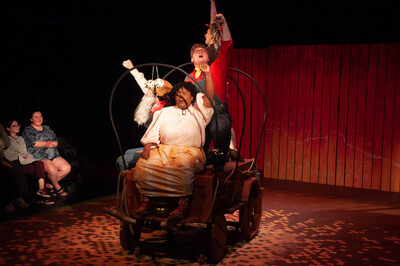 Performance photograph for The Trail to Oregon! performed by A-State Theatre in April 2023.