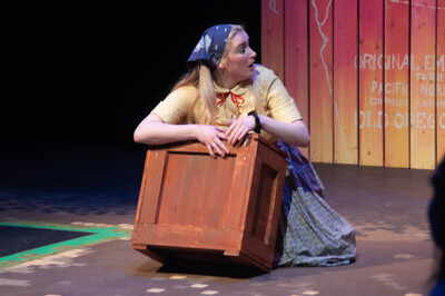 Performance photograph for The Trail to Oregon! performed by A-State Theatre in April 2023.