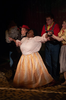 Performance photograph for The Trail to Oregon! performed by A-State Theatre in April 2023.