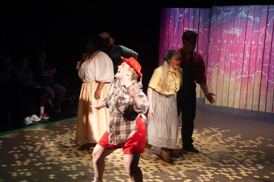 Performance photograph for The Trail to Oregon! performed by A-State Theatre in April 2023.