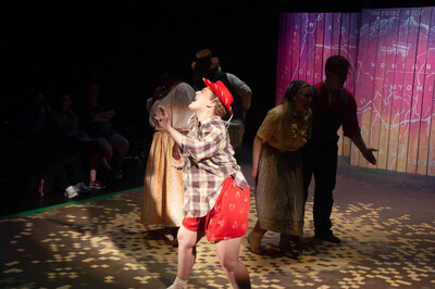 Performance photograph for The Trail to Oregon! performed by A-State Theatre in April 2023.
