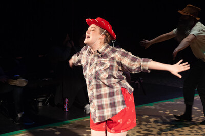 Performance photograph for The Trail to Oregon! performed by A-State Theatre in April 2023.