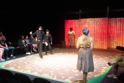 Performance photograph for The Trail to Oregon! performed by A-State Theatre in April 2023.