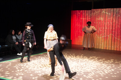 Performance photograph for The Trail to Oregon! performed by A-State Theatre in April 2023.
