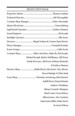 Costume Shop - Ellen-Ann Keys, Kaito Ito, Kit Joseph, Michael Joseph, Baylor McElhaney, Alli Peavy, Emily Provence, Alli Peavy, Robyne Richards, & Lindsey Zimmer