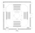A 2D rendering of the stage and audience layout for the production run of The Thanksgiving Play.