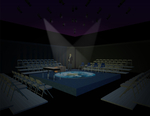 A 3D rendering of the stage design showing the lighting and general setup of the props.