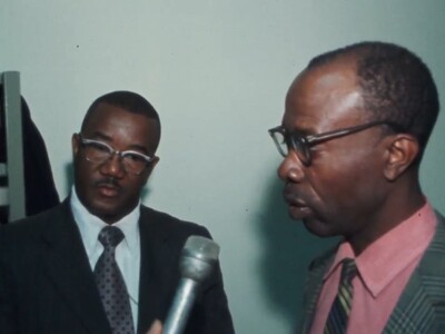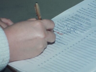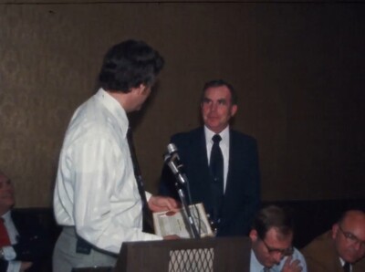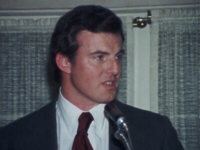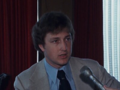 KIAT8 reporter interviews an attendee of a meeting on the possible consolidations of schools under the Quality Education Act when it is enacted in 1979. Arkansas Governor David Pryor talks with KAIT8 reporter on a possible surplus.