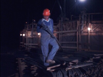 Men in Hard Hats Work at a Construction Site