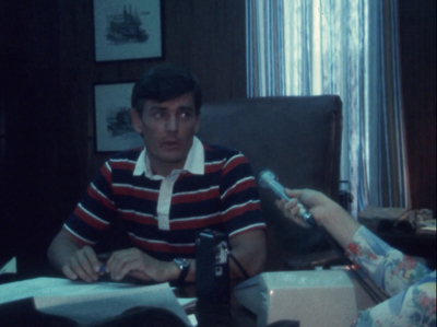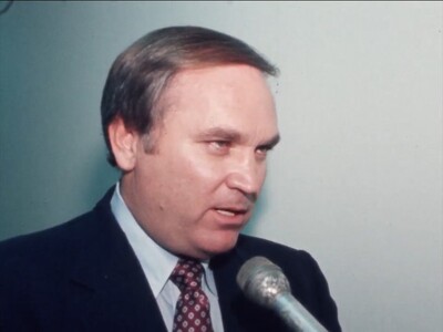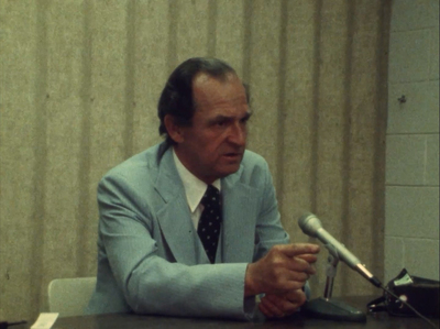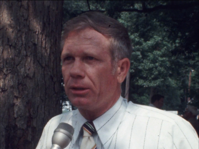 Several shots during U.S. Representative Bill Alexander's reelection campaign. During a speech, he states he has had no communication with his opponent during his campaign regarding a disputed point.