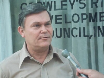 U.S. Representative Bill Alexander speaks with reporters concerning on the drop in unemployment. He also indicates that as long as productivity continues to increase, he sees President Jimmy Carter reaching his goals by 1981.
