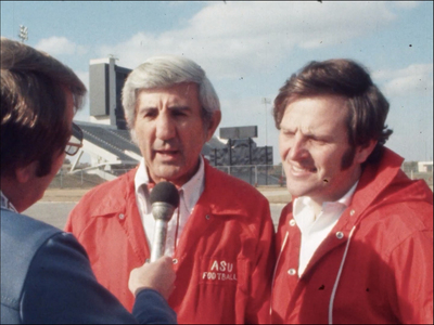 KAIT reporter Dick Clay interviews A-State football coach Bill Davidson about the Southland Conference. Davidson discusses the Independence Bowl Game between McNeese State and University of Tulsa.