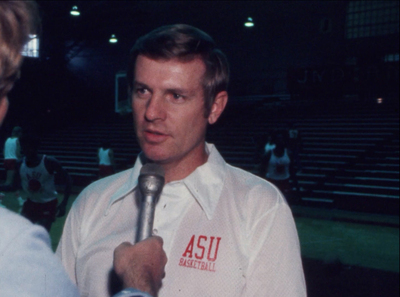 KAIT8 reporter Dick Clay interviews A-State basketball coach Marvin Adams on their upcoming exhibition match against the Australian National team and the 1976-'77 season.