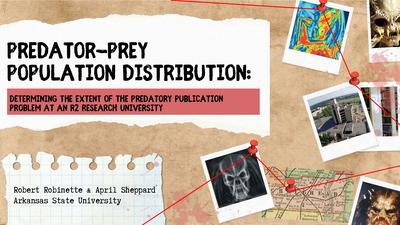 Determining the extent of the predatory publication problem at an R2 research university, Robert and April share their discoveries as well as how that impacts library services. This was presented at the Arkansas Library Association (ArLA) conference on October 19, 2025.